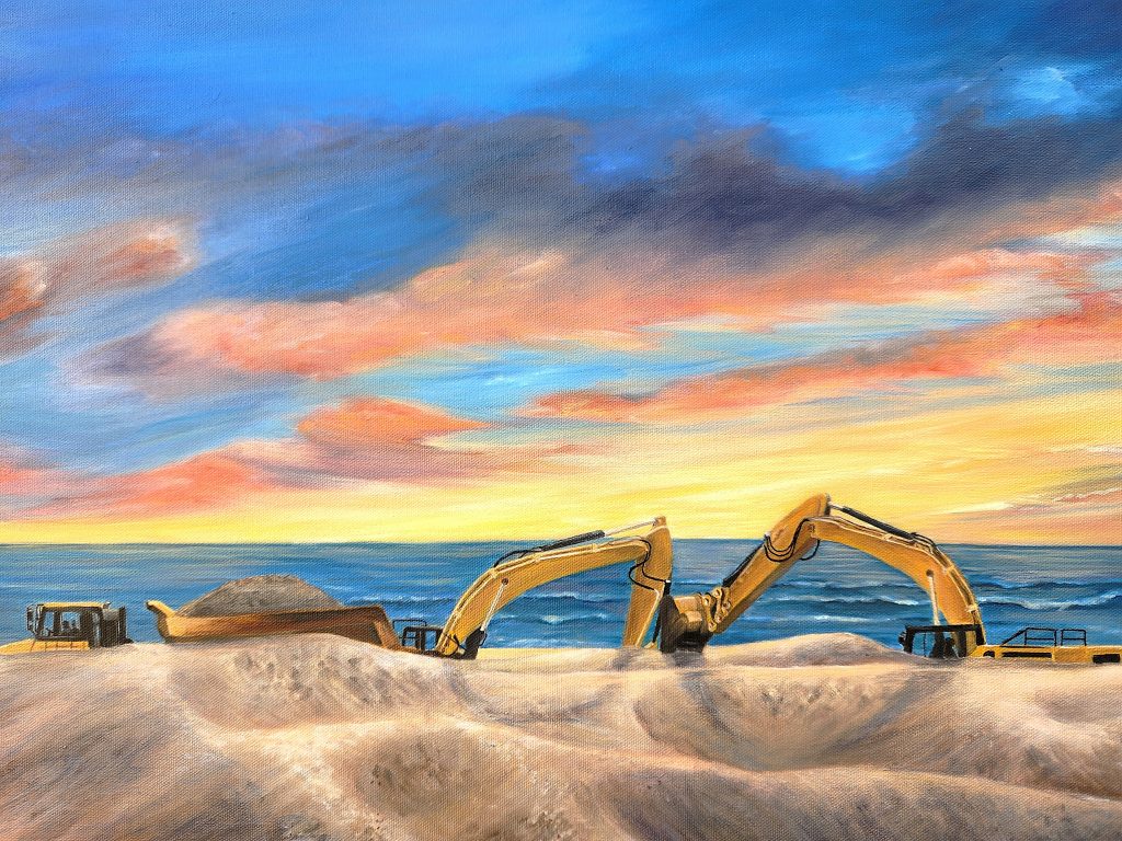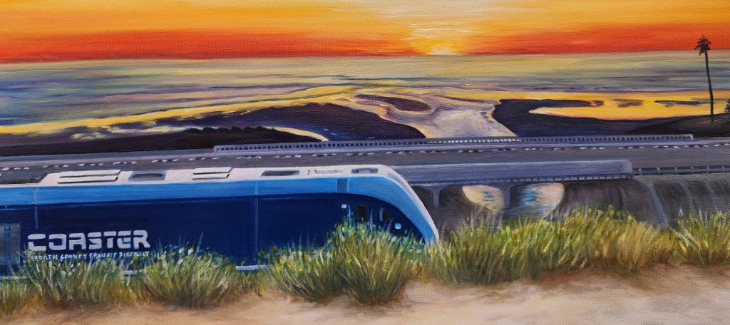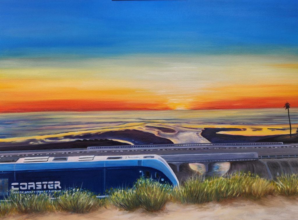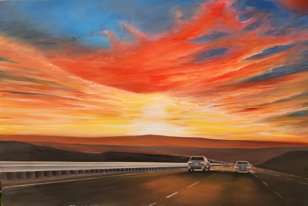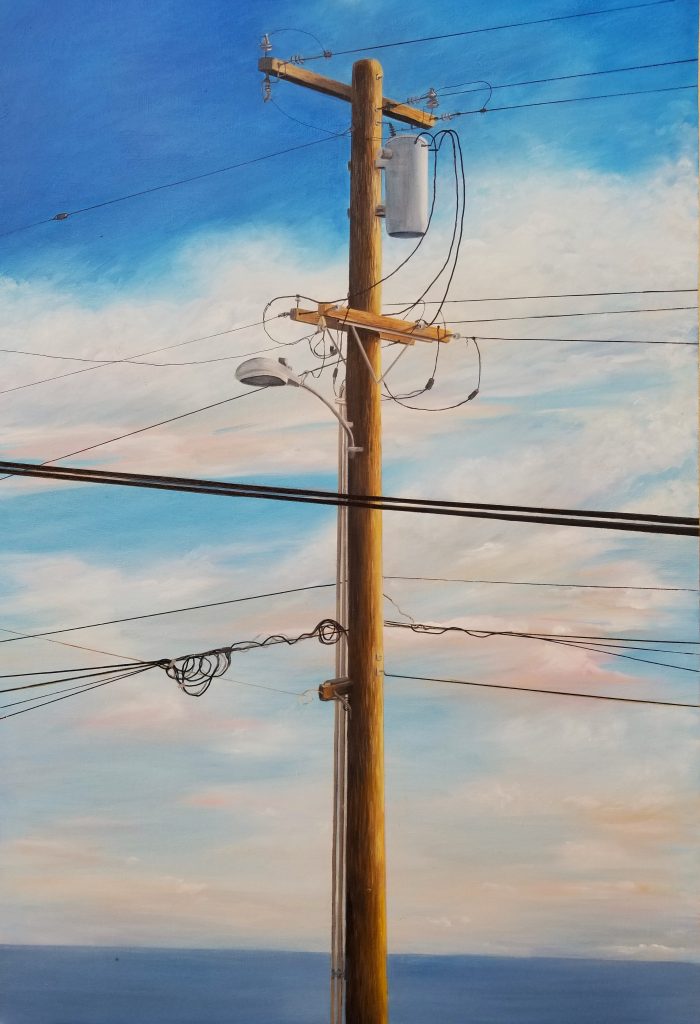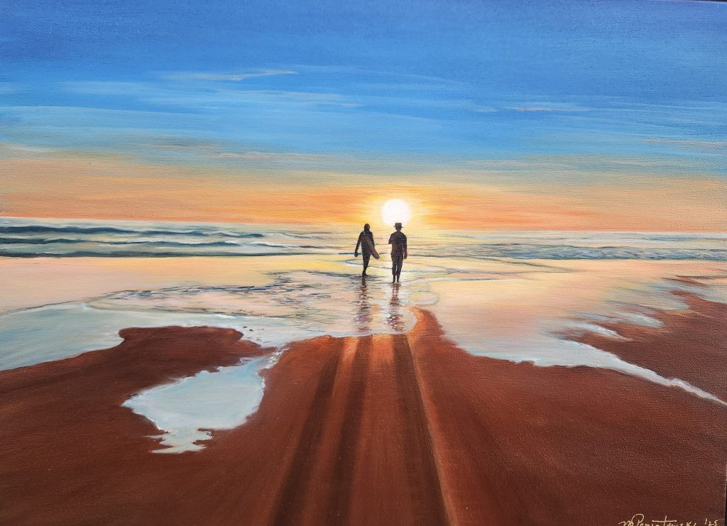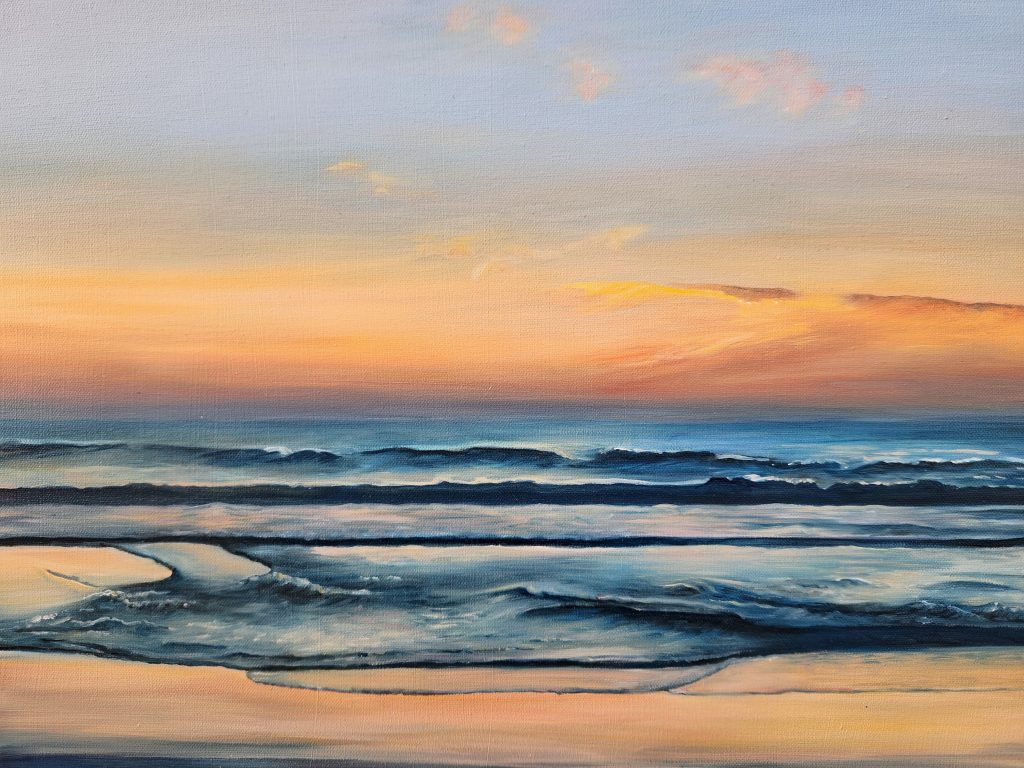 Mary has lived in Cardiff for 27 years and has been enriched by the natural beauty she wakes up to every day. Now retired, Mary spends her time painting landscapes inspired by her surroundings. Many of her paintings play with a juxtaposition of a man-made object, set against a striking ocean or sunset. From the walls of her home, her paintings reflect her passion for creating original works of art